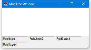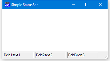 The following example illustrates a default StatusBar containing three StatusFields. Notice how the StatusFields are positioned automatically.