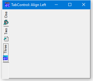 If Align is 'Left' or 'Right', the tabs or buttons are arranged top-to-bottom along the left or right edge of the TabControl as shown below.