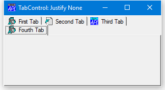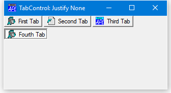 If Justify is 'Right' (which is the default), the TabControl increases the width of each tab, if necessary, so that each row of tabs fills the entire width of the tab control. Otherwise, if Justify is empty or 'None', the rows are ragged as shown below.