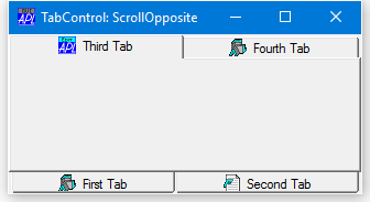 The ScrollOpposite property specifies that unneeded tabs scroll to the opposite side of a TabControl, when a tab is selected. This only applies when MultiLine is 1.
