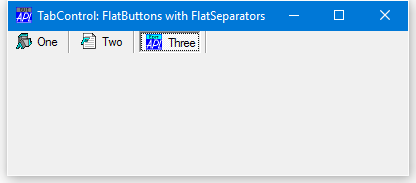 If Style is 'FlatButtons', the FlatSeparators property specifies whether or not separators are drawn between the buttons. The following example illustrates the effect of setting FlatSeparators to 1.