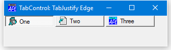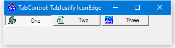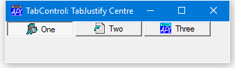 If fixed size tabs are in effect, the positions at which the picture and Caption are drawn within each TabButton is controlled by the TabJustify property which may be 'Centre'(the default), 'Edge', or 'IconEdge'.