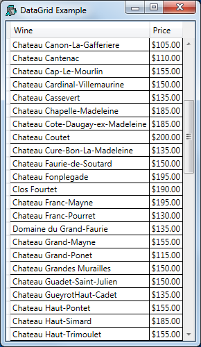The XAML shown below, describes a Window containing a DockPanel, inside which is a DataGrid. The XAML is identical to the XAML in Example 7, except for the window caption.