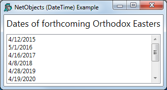NetObjects[4] creates a vector of DateTime objects from the global variable Easter.