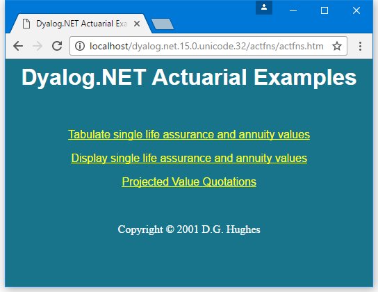 The ACTFNS subdirectory in samples\asp.net contains some examples of Dyalog APL systems that have been converted to run as Web applications using this technique.