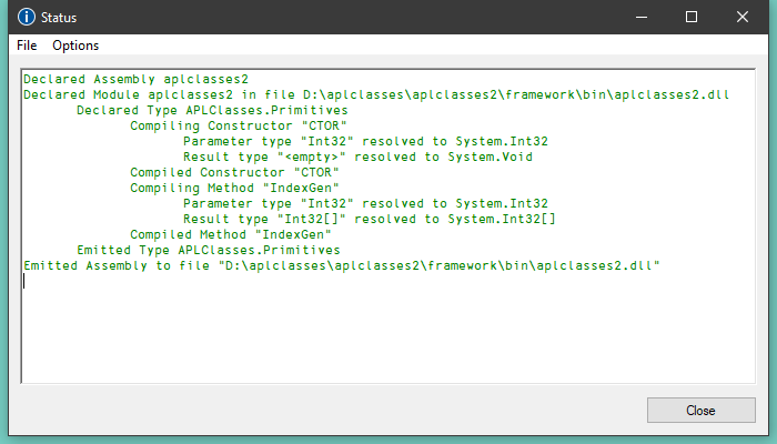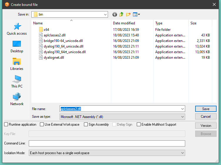 Using this version, build a new .NET Assembly using File/Export… as before. Remember that the Build runtime assembly checkbox is unchecked.