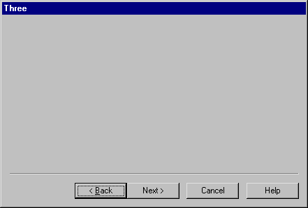 Conventionally, the buttons change according to which of the PropertyPages is currently displayed. If the first one is displayed, the Next button is active but the Back button is inactive. When a middle page is displayed, both the Next and Back buttons are active. When the last page is displayed, the caption on the Next button changes to Finish. However, in some applications, the Back button may be disabled to prevent the user returning to a previous page.