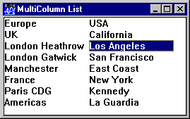 MultiColumn is Boolean and specifies whether or not a List object displays its items in a single column (0, the default) or in multiple columns (1). MultiColumn may only be set by ⎕WC and cannot be changed using ⎕WS after the object has been created. Note that a MultiColumn List will use the minimum number of columns that are required to make the items fit within it and will reconfigure itself automatically when resized.