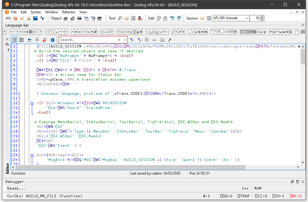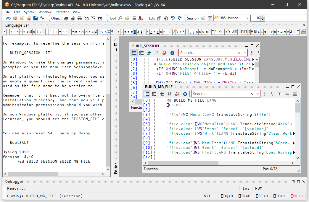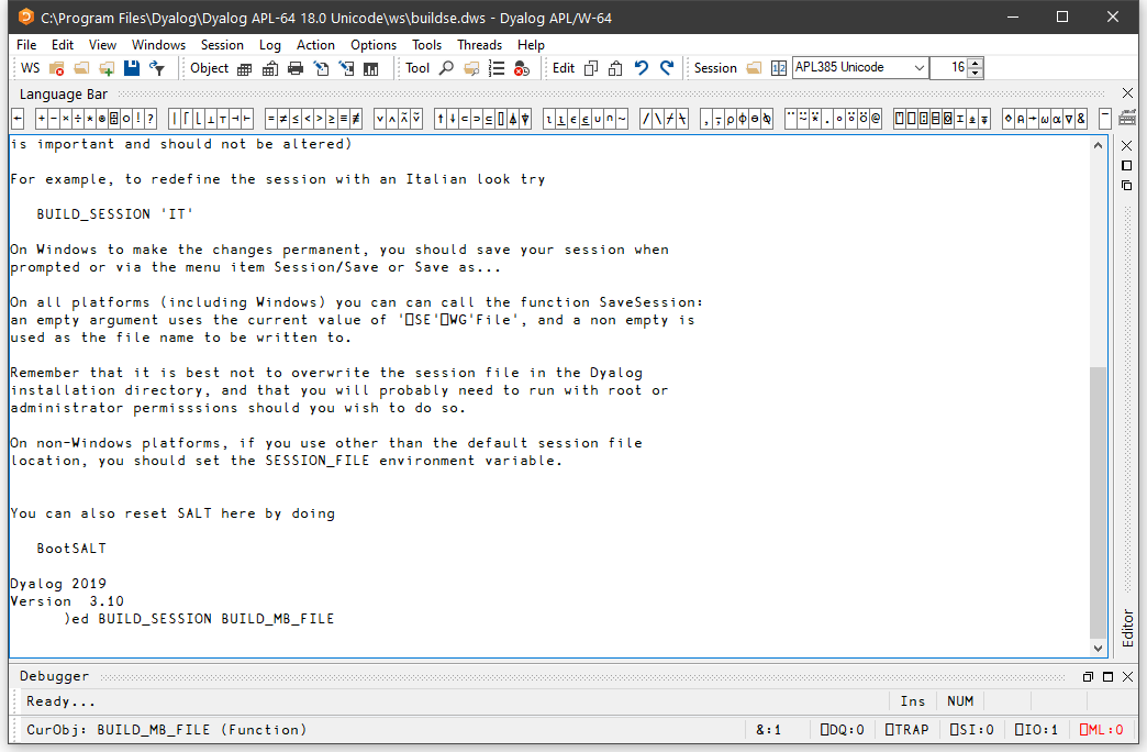 The picture below shows the effect of maximising the Editor. The BUILD_SESSION edit window is itself maximised within the Editor too.