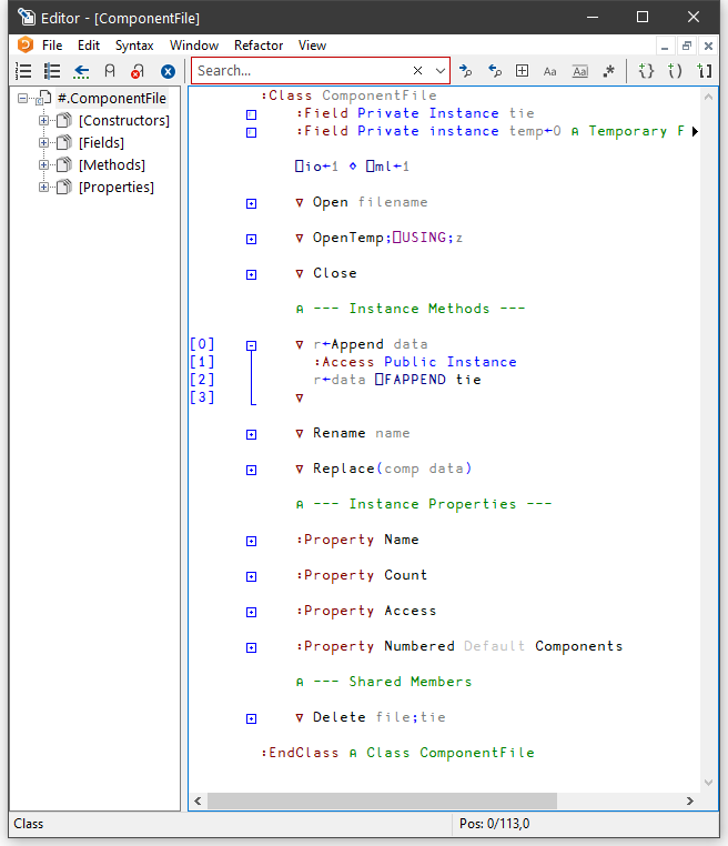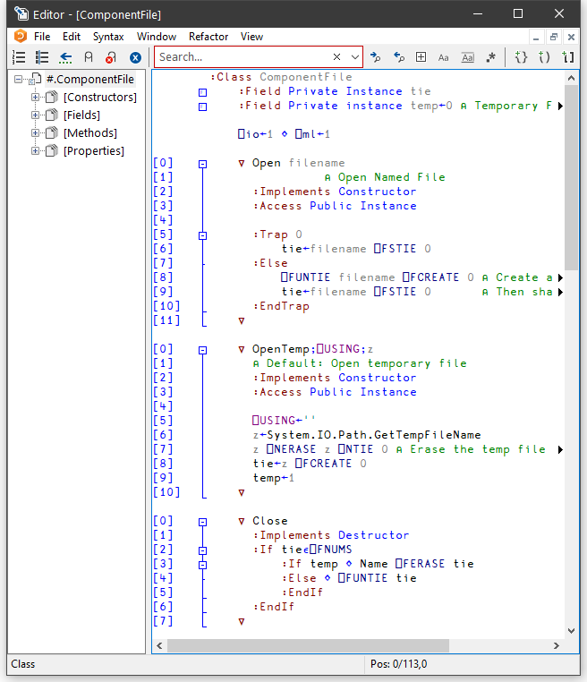 The picture below shows the result of opening the ComponentFile class. Notice how each function is delineated separately and that each function is individually line-numbered.