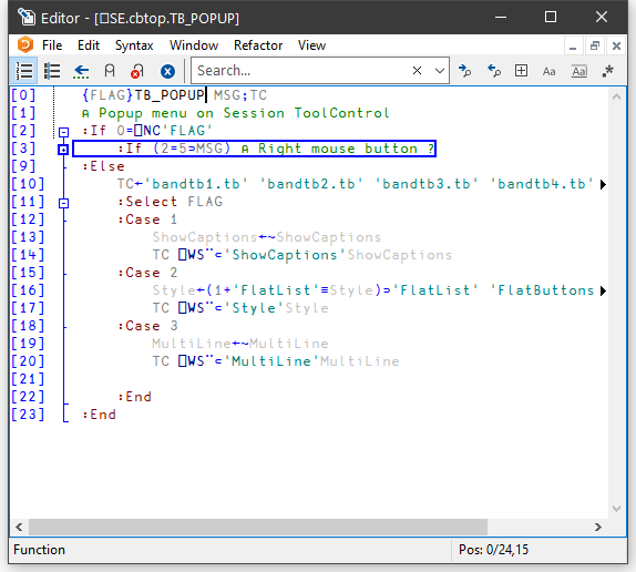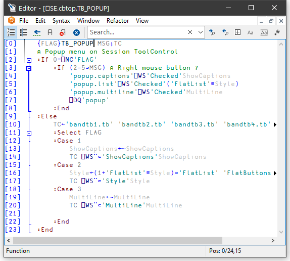 The picture below shows the result of opening the function ⎕SE.cbtop.TB_POPUP.