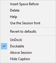 | Use the Session font | Displays the symbols using the current Session font (by default the symbols are displayed using a small font) |