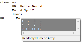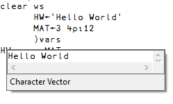 For example, in the following picture the mouse pointer was moved over the name of the variable HW in the Session window.