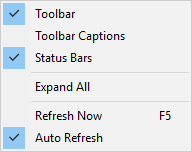 | Refresh Now | Redisplays the TreeView and ListView with the current structure and contents of the workspace. Used if Auto Refresh is not enabled. |