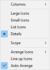 | Auto Arrange | If checked, the icons are automatically re-arranged when appropriate |
